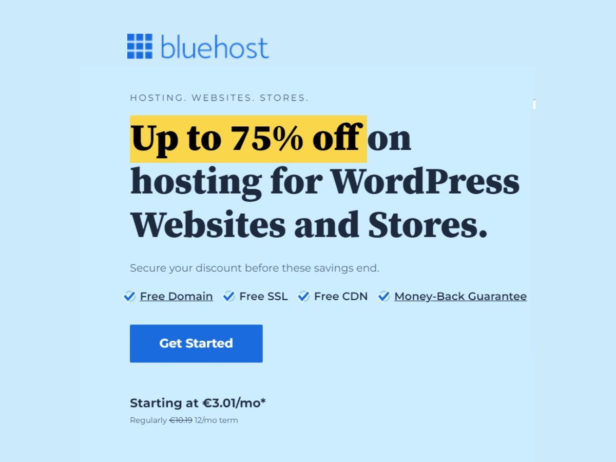 Bluehost is a leading web hosting provider that offers a range of hosting solutions to help individuals and businesses establish their online presence. Known for its reliability, performance, and excellent customer support, Bluehost provides everything you need to create, manage, and grow your website. From shared hosting to dedicated servers, Bluehost caters to various hosting needs with robust features and competitive pricing.