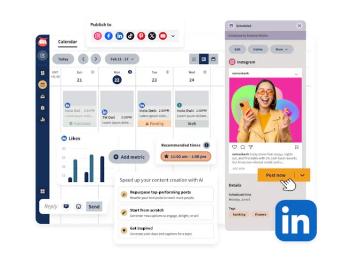 - Scheduling and Publishing: Schedule posts in advance across multiple platforms to maintain a consistent posting schedule.